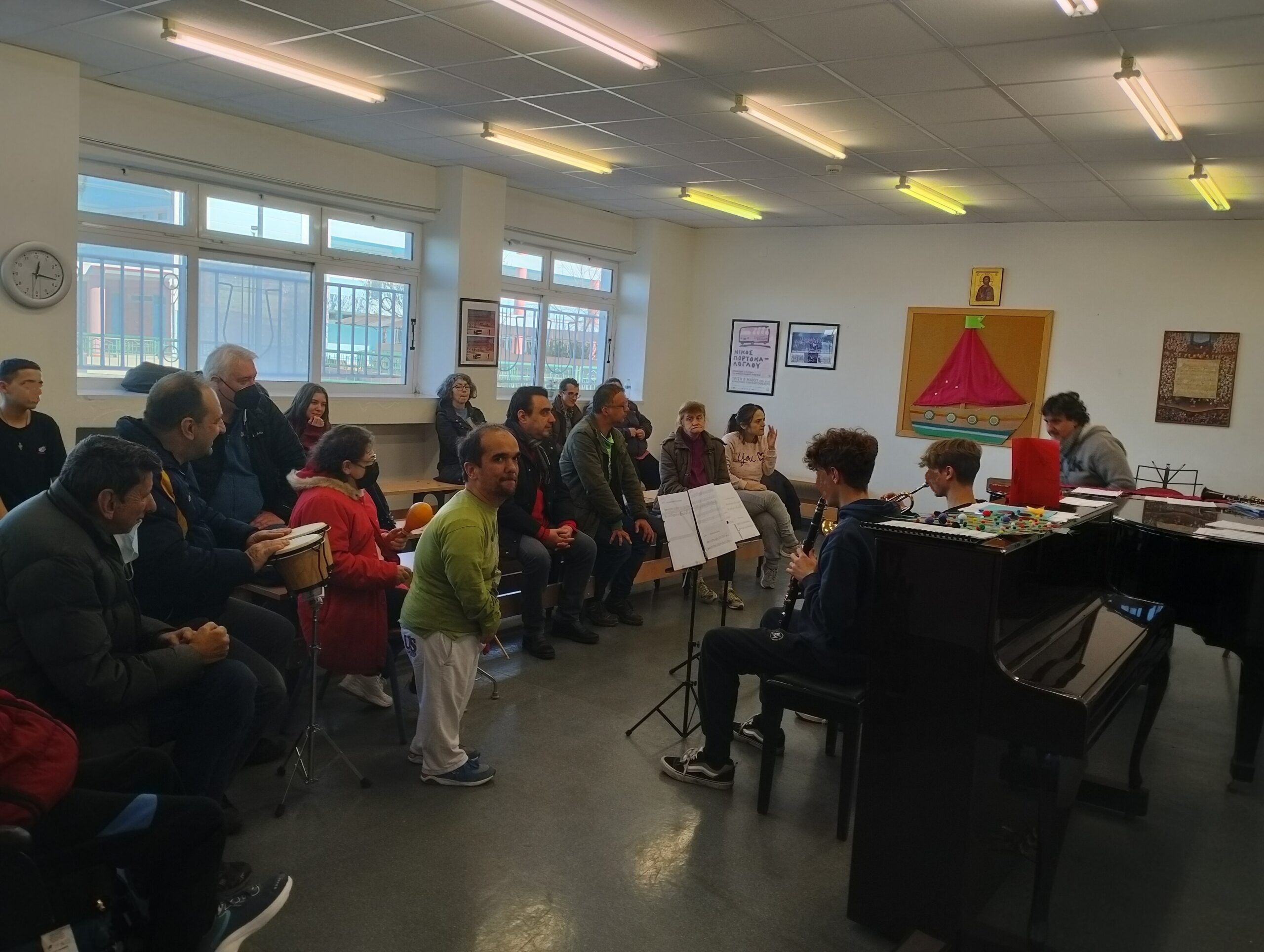Μέσα στα πλαίσια του προγράμματος κοινωνικοποίησης και λόγω των εορτών, οι νέοι-ες του ¨Θεοδωρίδειου Κέντρου-Ορίζοντες¨ επισκέφτηκαν το Μουσικό σχολείο Καρδίτσας. Εκεί τους περίμενε μια ωραία έκπληξη καθώς οι καθηγητές του σχολείου μαζί με τους μαθητές, είχαν ετοιμάσει μια ξεχωριστή μέρα. Διάφορες ομάδες παιδιών μαζί με τους καθηγητές τους έπαιξαν και τραγούδησαν όλοι μαζί χριστουγεννιάτικα τραγούδια, …