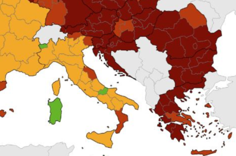 Στo κόκκινο βρίσκεται ολόκληρη σχεδόν η χώρα σε ότι αφορά την πανδημία του κοροναϊού, όπως επιβεβαιώνουν οι νέοι χάρτες του Ευρωπαϊκού Κέντρου Πρόληψης και Ελέγχου Νόσων (ECDC). Σύμφωνα με τον αναθεωρημένο χάρτη που δημοσιεύτηκε την Πέμπτη 11 Νοεμβρίου, στη συνολική απεικόνιση της κατάστασης στη χώρα τις τελευταίες 14 ημέρες, εκεί όπου συνυπολογίζονται το επίπεδο συναγερμού, η …