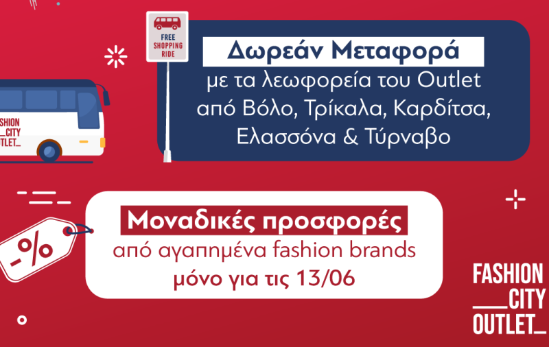 Κυριακή 17/7 με ανοιχτά καταστήματα και δωρεάν λεωφορεία στο Fashion City Outlet