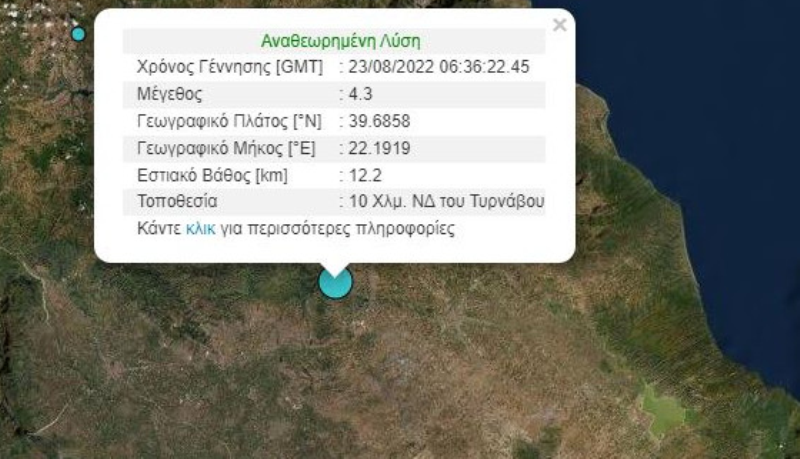 Αισθητός σε όλη τη Θεσσαλία ο σεισμός 4,3 Ρίχτερ στον Τύρναβο