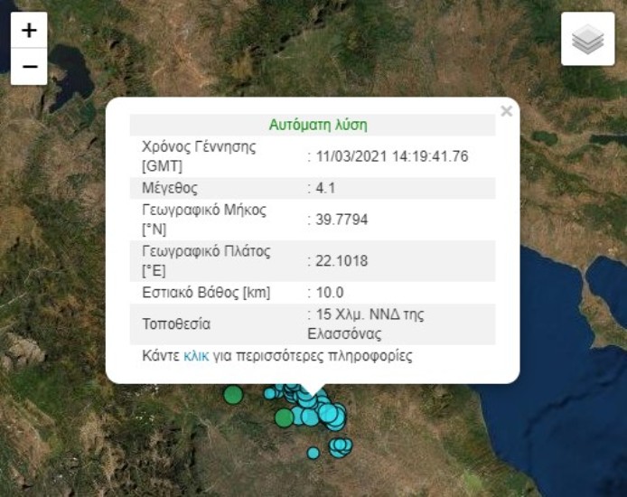 Νέα σεισμική δόνηση 4,1 Ρίχτερ στη Λάρισα