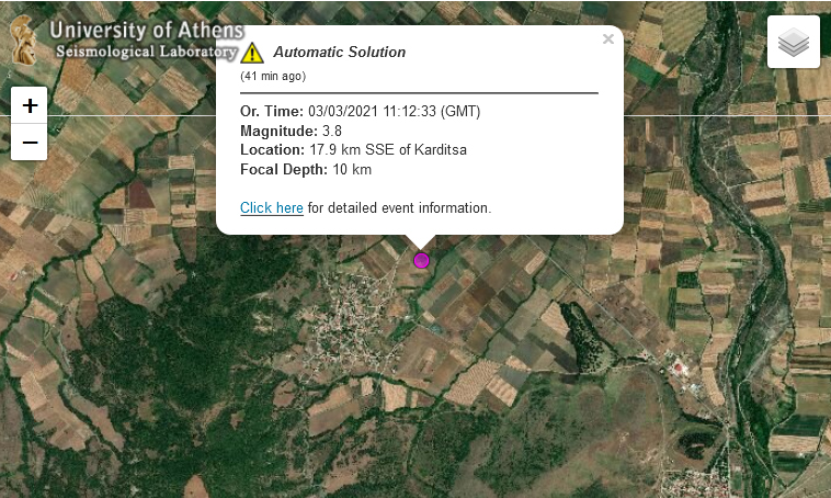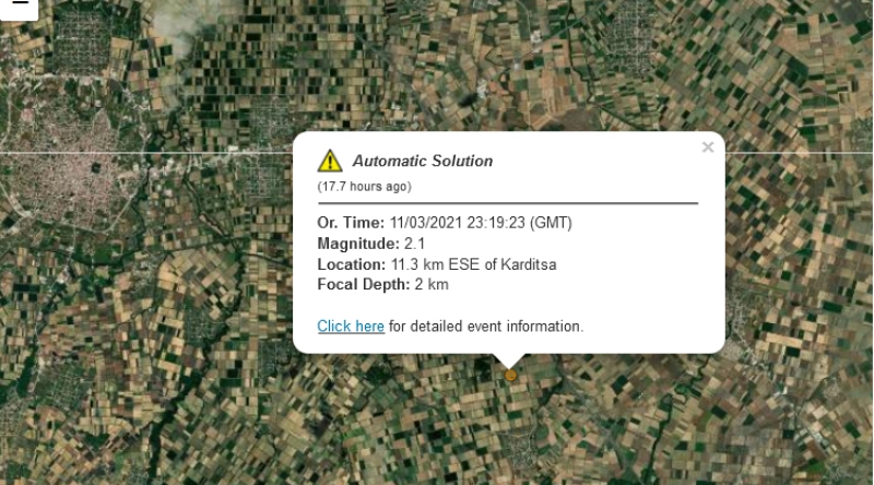 Σεισμική δόνηση 3,8 Ρίχτερ στην Καρδίτσα