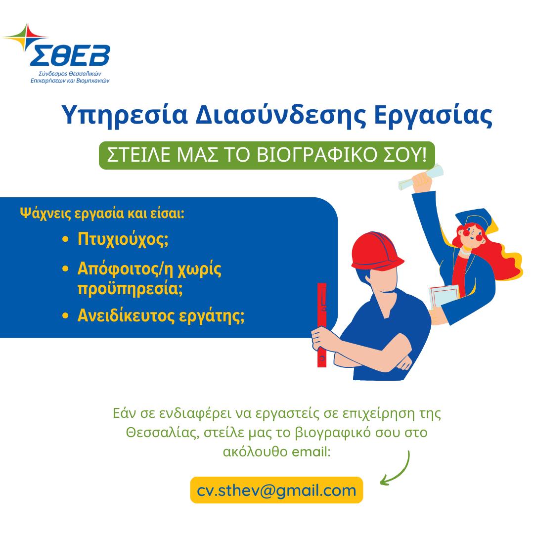 Η Υπηρεσία Διασύνδεσης Εργασίας του ΣΘΕΒ εργαλείο για την σύνδεση ανέργων με τις επιχειρήσεις της Θεσσαλίας