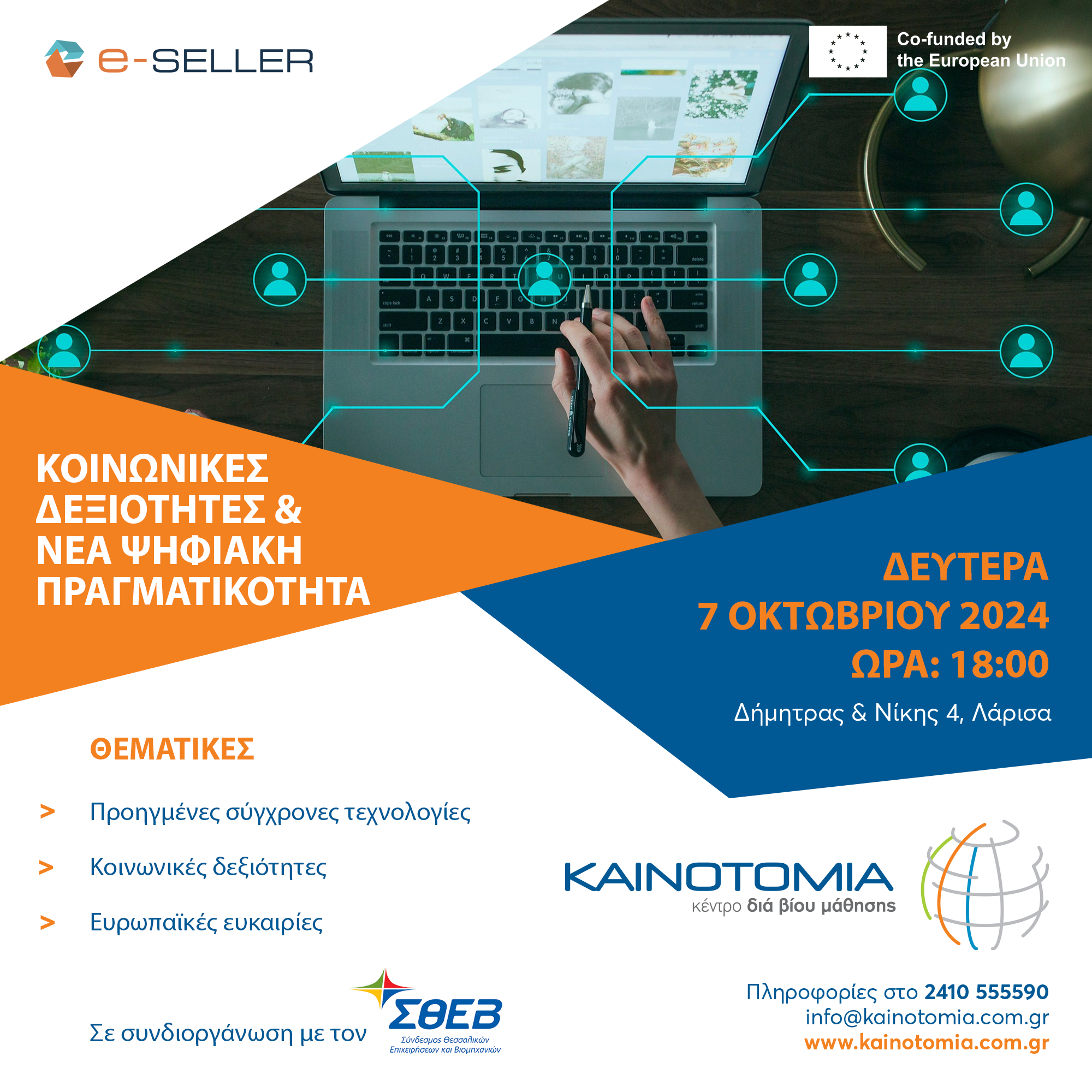 Ο Σύνδεσμος Θεσσαλικών Επιχειρήσεων και Βιομηχανιών (ΣΘΕΒ), σε συνεργασία με το Κέντρο Διά Βίου Μάθησης ΚΑΙΝΟΤΟΜΙΑ ανακοινώνει την εκδήλωση με θέμα “Κοινωνικές Δεξιότητες και Νέα Ψηφιακή Πραγματικότητα”, η οποία θα πραγματοποιηθεί τη Δευτέρα 7 Οκτωβρίου 2024, στις 18:00 στο ΚΑΙΝΟΤΟΜΙΑ Κέντρο Διά Βίου Μάθησης (οδός Δήμητρας & Νίκης). Η εκδήλωση εστιάζει στις σύγχρονες προκλήσεις που …
