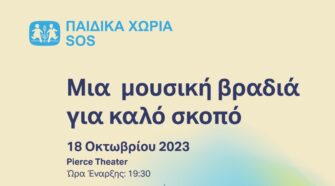 Τα Παιδικά Χωριά SOS συνεχίζουν να στέκονται δίπλα στους συνανθρώπους μας στις περιοχές που επλήγησαν και έχοντας στο πλευρό τους αναγνωρισμένους καλλιτέχνες διοργανώνουν μουσική βραδιά, της οποίας τα έσοδα θα διατεθούν για την υποστήριξη παιδιών και οικογενειών στη Θεσσαλία και στον Έβρο. Την Τετάρτη 18 Οκτωβρίου 2023, τα Παιδικά Χωριά SOS σας καλούν στο PierceTheater, …