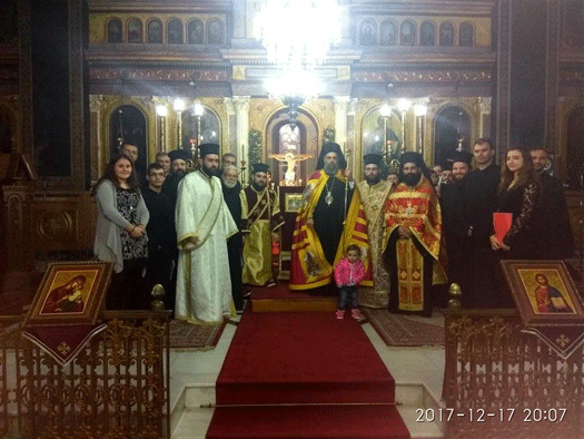Ο Σεβασμιώτατος Μητροπολίτης μας κ. Τιμόθεος, την Παρασκευή 3 Νοεμβρίου 2017, μετέβη στην πόλη της Κατερίνης και μετείχε στις λατρευτικές εκδηλώσεις επί τη μνεία της ανακομιδής των ιερών λειψάνων του αγίου και ενδόξου μεγαλομάρτυρος Γεωργίου του τροπαιοφόρου, κατά την οποία ήγαγε τα ονομαστήριά του ο Σεβασμιώτατος Μητροπολίτης Κίτρους, Κατερίνης και Πλαταμώνος κ. Γεώργιος.
