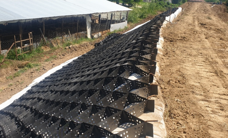 Εγκατάσταση γεωκυψελωδών συστημάτων για την αντιμετώπιση των διαβρώσεων σε αναχώματα του Καλέντζη