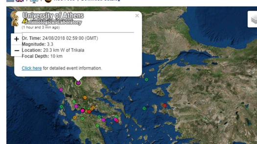 Σεισμός 3,3 της κλίμακας Ρίχτερ στα Τρίκαλα