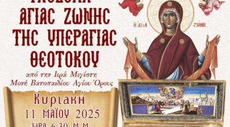 Ἡ Ἱερά Μητρόπολη Θεσσαλιώτιδος καὶ Φαναριοφερσάλων ἀνακοινώνει ὅτι, τὴν Κυριακὴ 11 Μαΐου 2025 καὶ ὥρα 6:30΄μ.μ., ὁ Σεβασμιώτατος Μητροπολίτης μας κ. Τιμόθεος, ἐπικεφαλῆς τοῦ ἱεροῦ Κλήρου καὶ τοῦ εὐσεβοῦς λαοῦ, θὰ ὑποδεχθεῖ τὴν Ἁγία Ζωνὴ τῆς Παναγίας μας ἔναντι τοῦ Ξενοδοχείου ΑΡΝΗ, (εἴσοδος Κεντρικῆς Πλατείας) πόλεως Καρδίτσας, τὴν ὁποία θὰ κομίσει ὁ Πανοσιολογιώτατος Ἀρχιμανδρίτης Γέρων Ἐφραίμ, Καθηγούμενος τῆς Ἱερᾶς Μεγίστης …