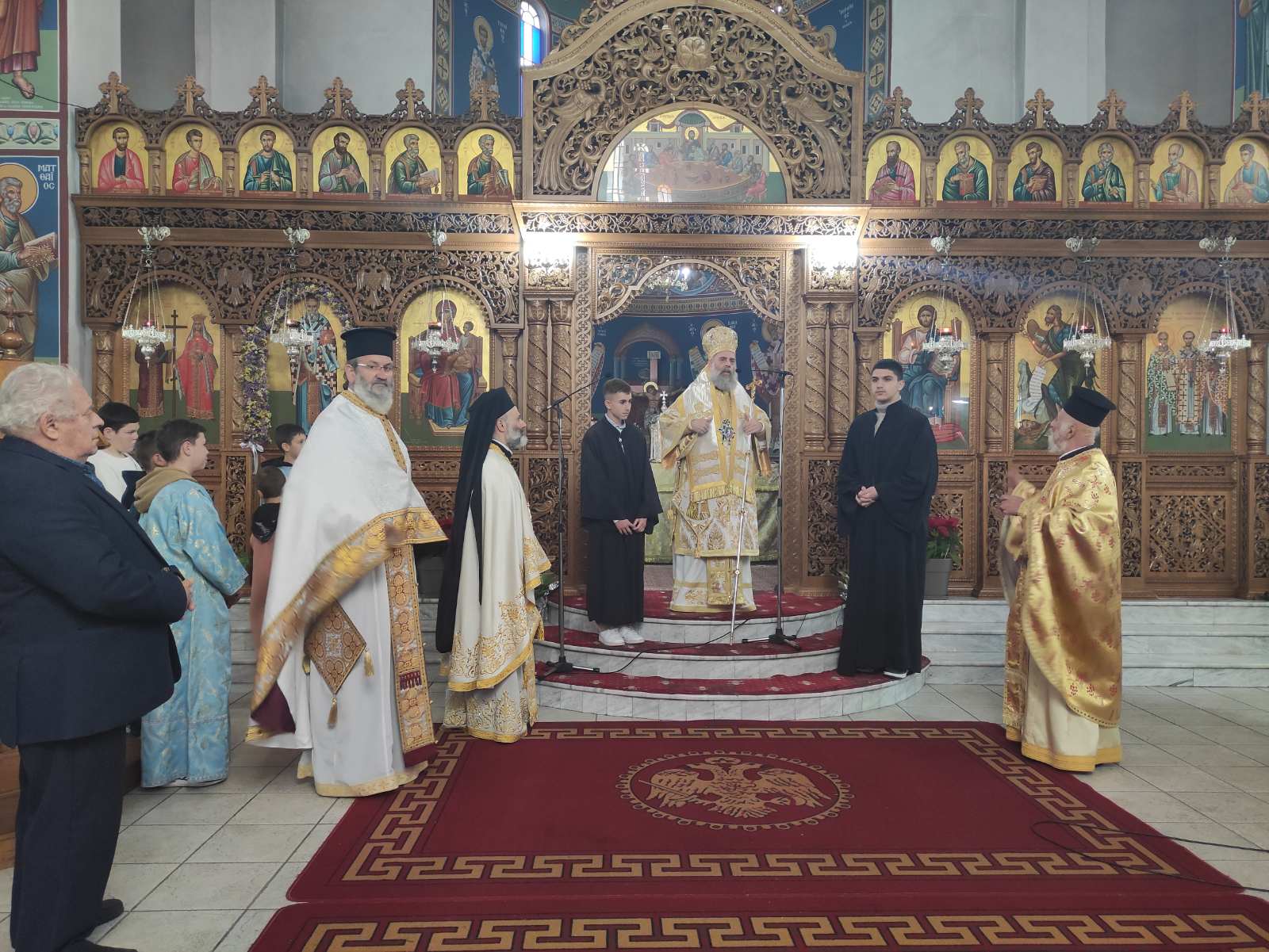 Ο Σεβασμιώτατος Μητροπολίτης μας κ. Τιμόθεος, την Κυριακή 28 Ιανουαρίου, χοροστάτησε στην ακολουθία του Όρθρου και τέλεσε τη Θεία Λειτουργία στον Ιερό Ναό Αγίου Γεωργίου Τ.Κ. Άνω Χαλκιάδων.