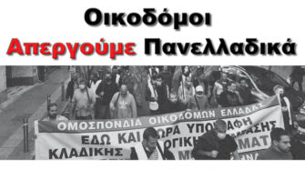 Συνάδελφοι οικοδόμοι, εργαζόμενοι στις Κατασκευές & τα συναφή επαγγέλματα, οι δύο Απεργιακές μάχες μέσα στο Νοέμβρη φανερώνουν την απόφαση μας να διεκδικήσουμε αγωνιστικά την ικανοποίηση των αιτημάτων μας από την εργοδοσία του κλάδου και την κυβέρνηση. Τα αιτήματα μας αφορούν άμεσα τη ζωή μας και τις ανάγκες των οικογενειών μας. Το μεροκάματο δεν φθάνει να καλύψει …