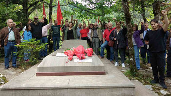 Λουλούδια στον μνήμα του Χαρίλαου Φλωράκη από ΚΚΕ, ΚΝΕ και ΠΕΑΕΑ-ΔΣΕ