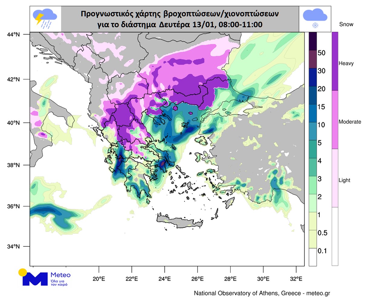 Χιονοπτώσεις σε ορεινές και ημιορεινές περιοχές της Θεσσαλίας – Χιονόνερο στα πεδινά και χαμηλές θερμοκρασίες