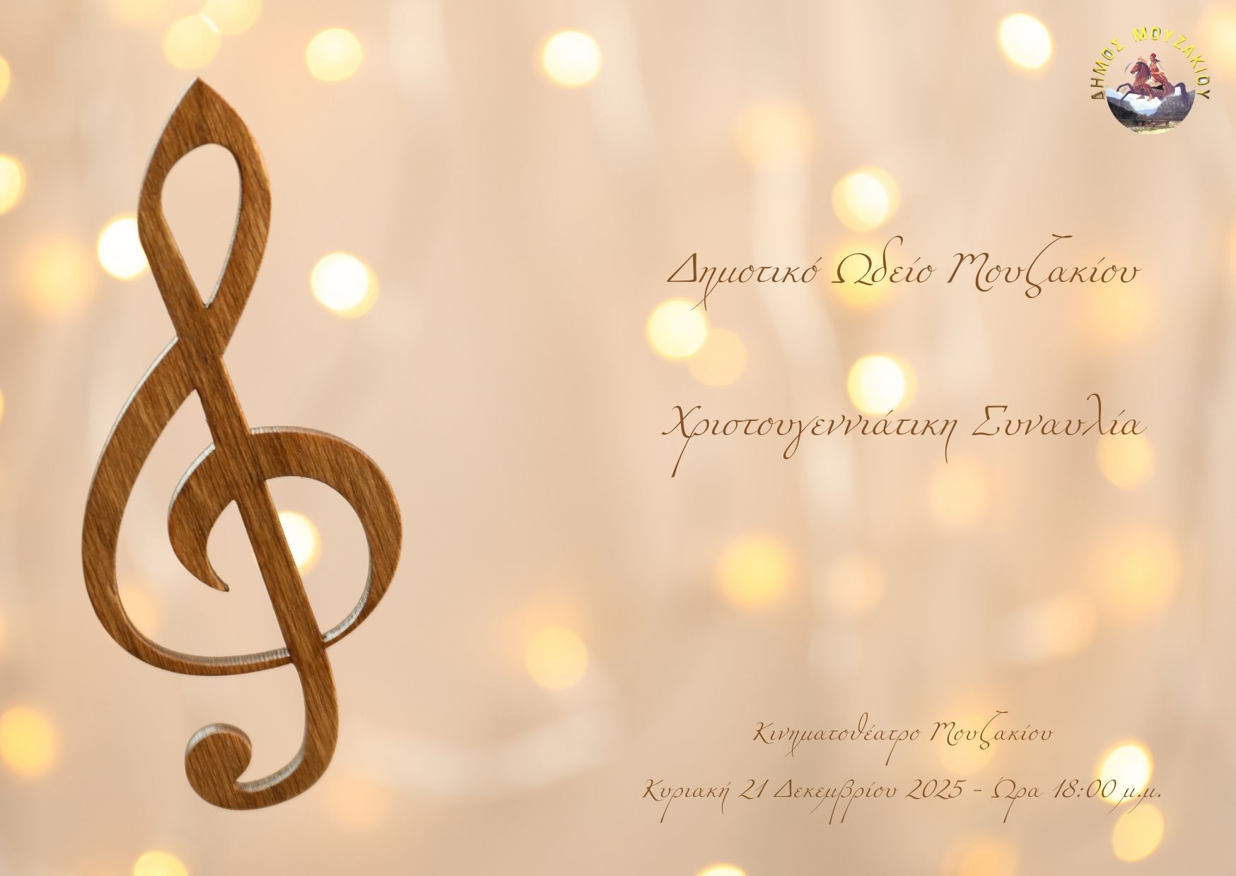 Ο Δήμος Μουζακίου σας προσκαλεί στη Χριστουγεννιάτικη Συναυλία του Δημοτικού Ωδείου Μουζακίου, η οποία θα πραγματοποιηθεί την Κυριακή 21 Δεκεμβρίου 2025 και ώρα 18:00 μ.μ. στο Κινηματοθέατρο Μουζακίου. Η συναυλία εντάσσεται στο πλαίσιο των εορταστικών εκδηλώσεων του Τεχνόδρομου και θα περιλαμβάνει χριστουγεννιάτικο μουσικό πρόγραμμα από τους μαθητές και τους καθηγητές του Δημοτικού Ωδείου Μουζακίου. Η …