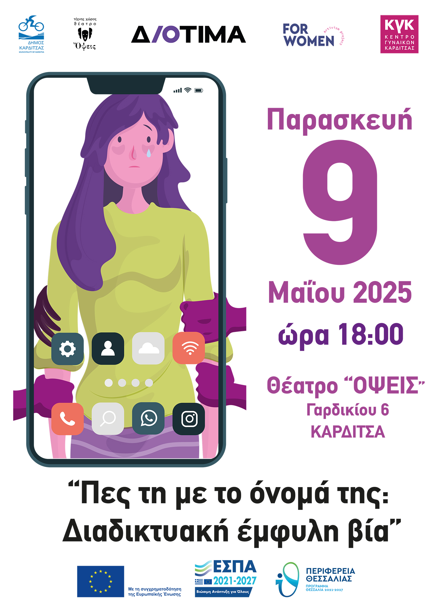 Εκδήλωση «Πες τη με το όνομά της: Διαδικτυακή έμφυλη βία» την Παρασκευή 9/5, στο Θέατρο «ΟΨΕΙΣ»
