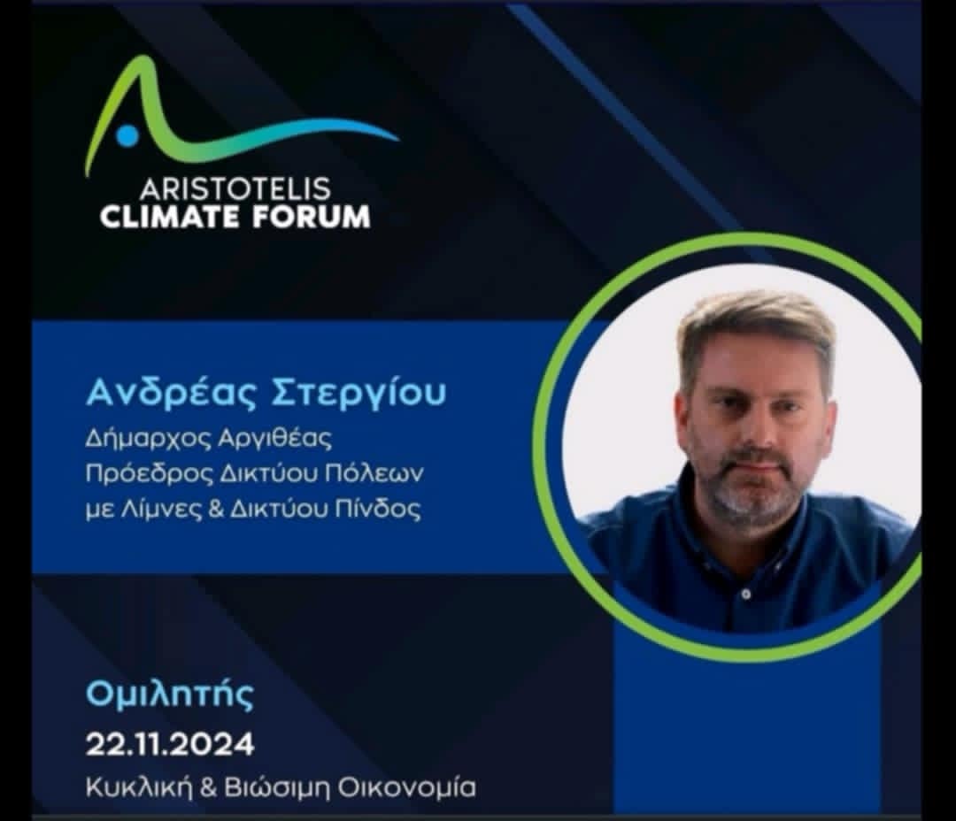 Ο Δήμαρχος Αργιθέας Ανδρέας Στεργίου βασικός ομιλητής στο 1ο Aristotelis Climate Forum (ACF)