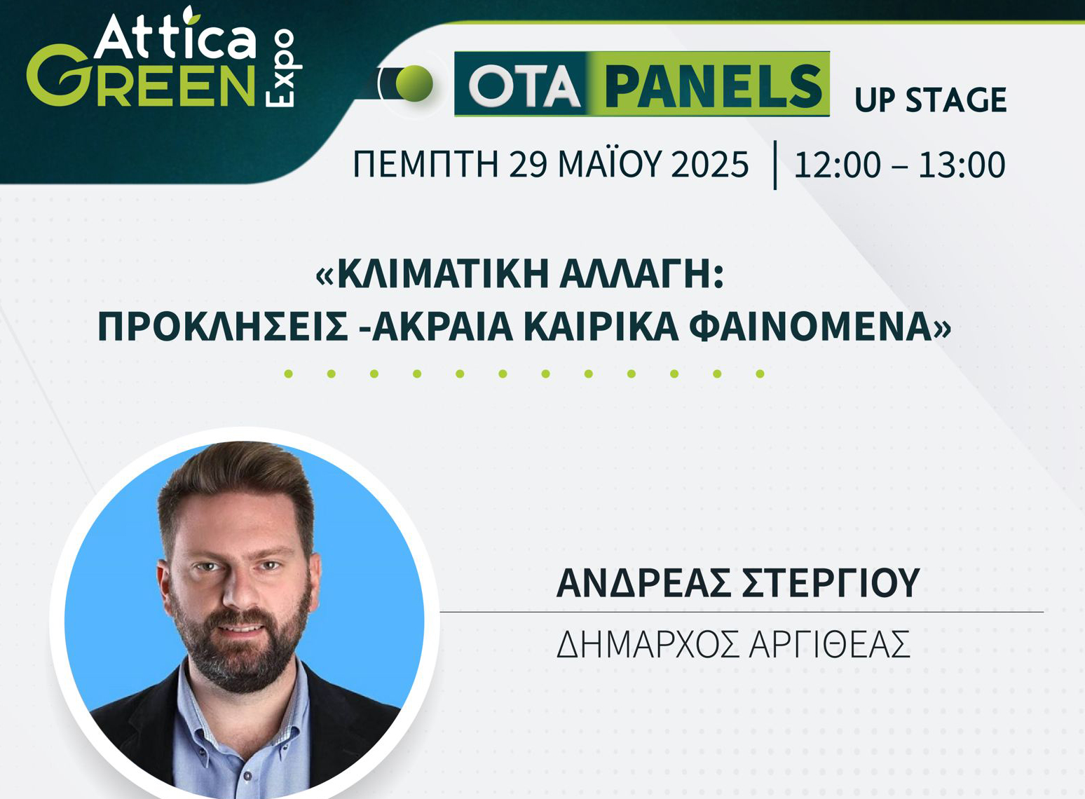 Ο Δήμαρχος Αργιθέας Ανδρέας Στεργίου θα μετέχει ως βασικός ομιλητής στην AtticaGreen Expo, σε μία από τις μεγαλύτερες εκθέσεις για τις πράσινες τεχνολογίες και το περιβάλλον. Συγκεκριμένα, την Πέμπτη 29 Μαΐου 2025 (12.00 – 13.00) θα είναι εισηγητής στο πάνελ με τίτλο «Κλιματική Αλλαγή: Προκλήσεις – Ακραία Καιρικά Φαινόμενα» μαζί με τον Γενικό Γραμματέα Δασών Στάθη …