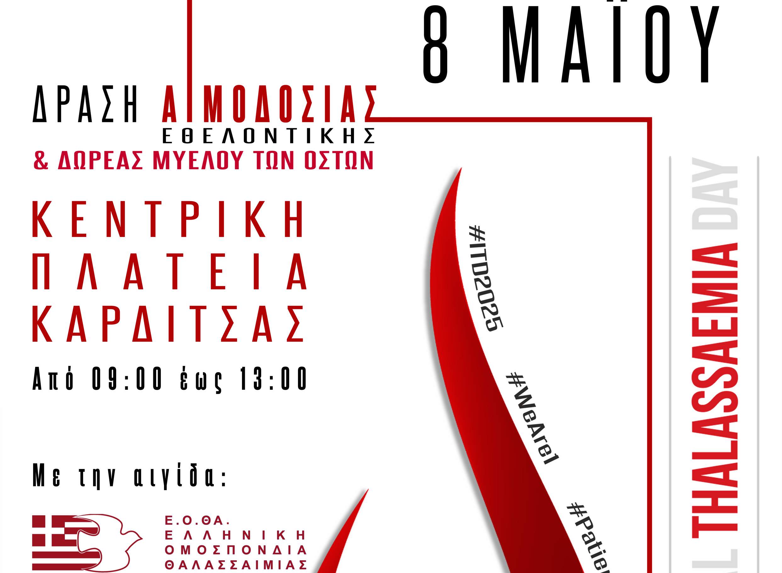 Εκδήλωση Εθελοντικής Αιμοδοσίας και Δωρεάς Μυελού των Οστών από το Σύλλογο Πασχόντων Θαλασσαιμίας Καρδίτσας
