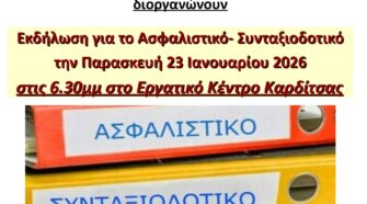 Η ΕΛΜΕ Καρδίτσας, ο Σύλλογος Εκπαιδευτικών Π.Ε. Καρδίτσας “Ν. Πλαστήρας” και η Π.Ε.Σ.ΕΚ -Παράρτημα Καρδίτσας Τρικάλων διοργανώνουν Εκδήλωση για το Ασφαλιστικό- Συνταξιοδοτικό την Παρασκευή 23 Ιανουαρίου 2026 στις 6.30μμ στο Εργατικό Κέντρο Καρδίτσας. Θα απαντηθούν ερωτήματα συνταξιούχων εκπαιδευτικών για εκκρεμότητες των συντάξεών τους καθώς και ερωτήματα υποψήφιων προς συνταξιοδότηση εκπαιδευτικών Πρωτοβάθμιας και Δευτεροβάθμιας Εκπαίδευσης. …