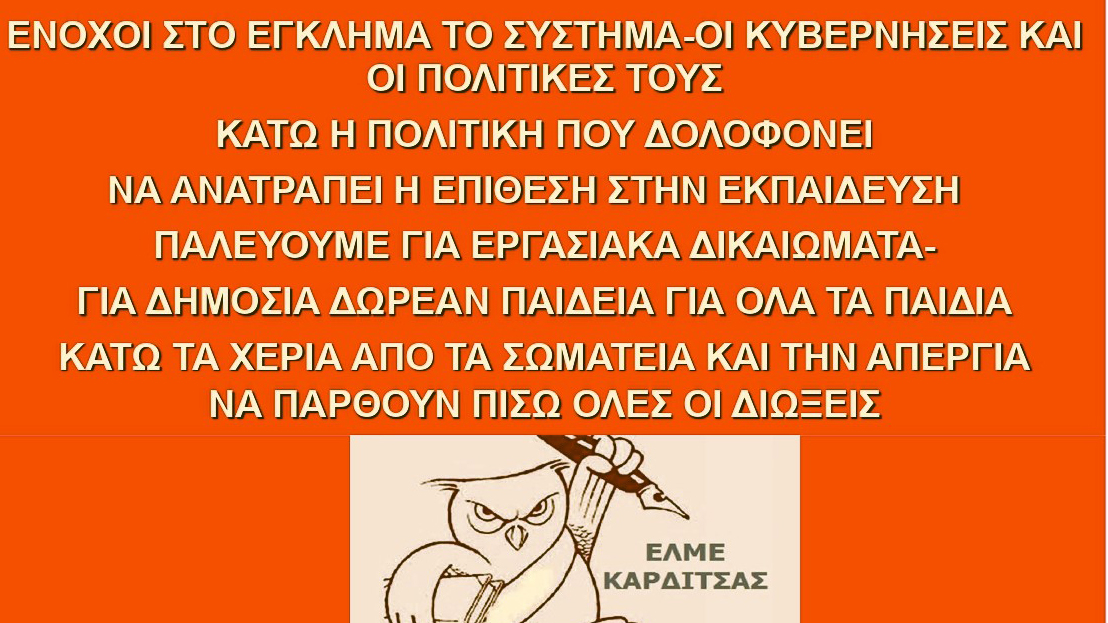 ΕΛΜΕ Καρδίτσας: Κάτω τα χέρια από τους εκπαιδευτικούς
