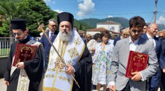 Ο Σεβασμιώτατος Μητροπολίτης μας κ. Τιμόθεος, την Δευτέρα της Διακαινησίμου 6 Μαΐου, τέλεσε την ακολουθία του Όρθρου και τη Θεία Λειτουργία στον Ιερό Ναό Αγίου Γεωργίου Τ.Κ. Γελάνθης. Στη συνέχεια, προέστη της επισήμου Δοξολογίας στον Ιερό Ναό Αγίου Νικολάου Τ.Κ. Μαυρομματίου. Ακολούθως, προέστη της Λιτανείας της εικόνος του Αγίου Γεωργίου του τροπαιοφόρου μέχρι την κεντρική …