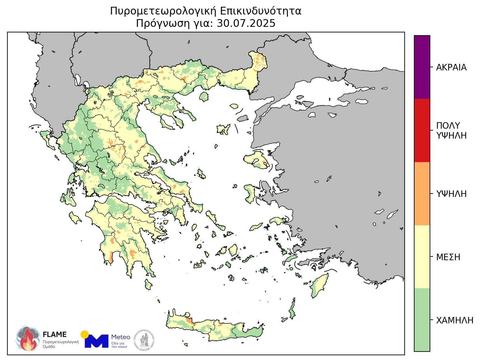 Ετοιμότητα λόγω του Χάρτη πρόβλεψης κινδύνου πυρκαγιάς (κατηγορία 3) που ισχύει για την Τετάρτη 30 Ιουλίου