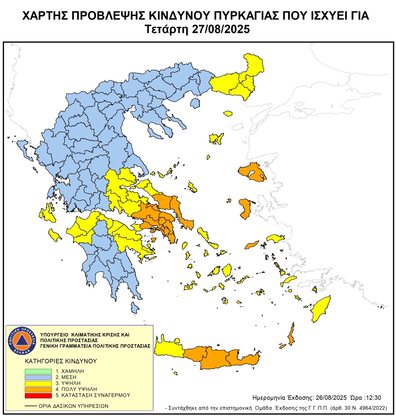 Ετοιμότητα λόγω του Χάρτη πρόβλεψης κινδύνου πυρκαγιάς (κατηγορία 3) που ισχύει για την Τετάρτη 26 Αυγούστου