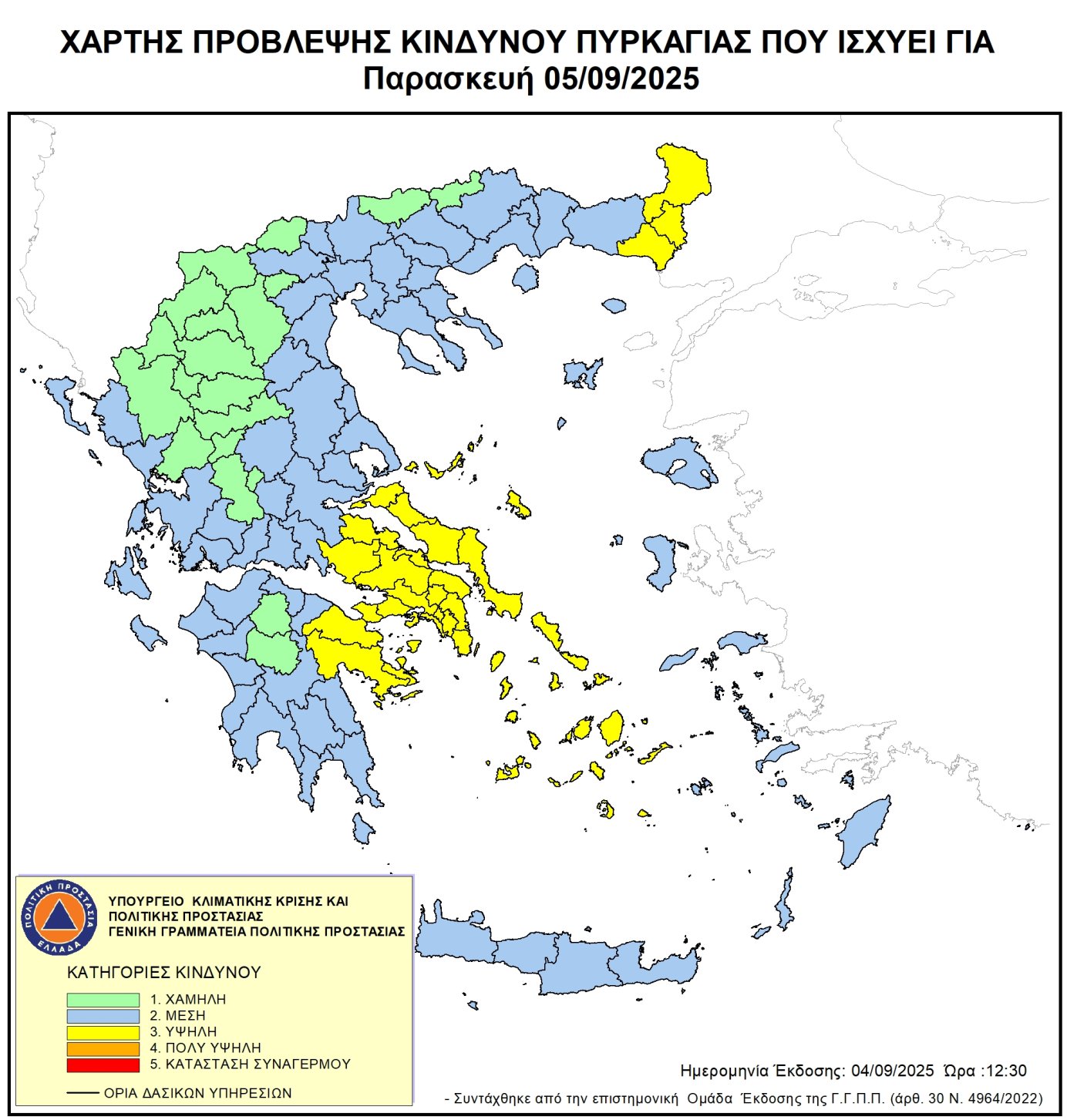 Ετοιμότητα λόγω του Χάρτη πρόβλεψης κινδύνου πυρκαγιάς (κατηγορία 3) που ισχύει για την Παρασκευή 5 Σεπτεμβρίου
