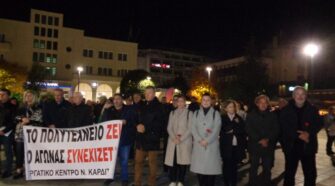 Με συνθήματα και πανό υπέρ της δημοκρατίας και της ελευθερίας φορείς και πολίτες της Καρδίτσας τίμησαν, το απόγευμα της Κυριακής, την επέτειο από την εξέγερση του Πολυτεχνείου. Αρχικά, πραγματοποιήθηκε κατάθεση στεφάνων στην πλατεία Δικαστηρίων και αμέσως μετά οι εκδηλώσεις τιμής και μνήμης μεταφέρθηκαν στην κεντρική πλατεία της πόλης. Εκεί έλαβαν χώρα δύο ξεχωριστές επετειακές συγκεντρώσεις. …