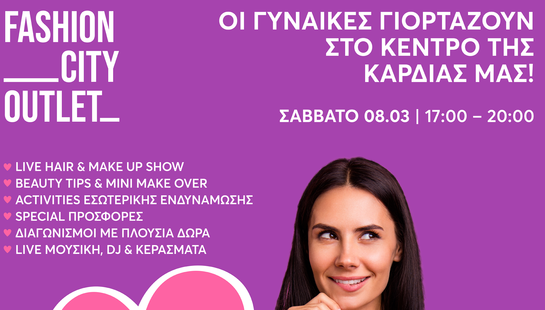 Σάββατο 8 Μαρτίου οι γυναίκες γιορτάζουν στο Fashion City Outlet, το κέντρο της καρδιάς μας!