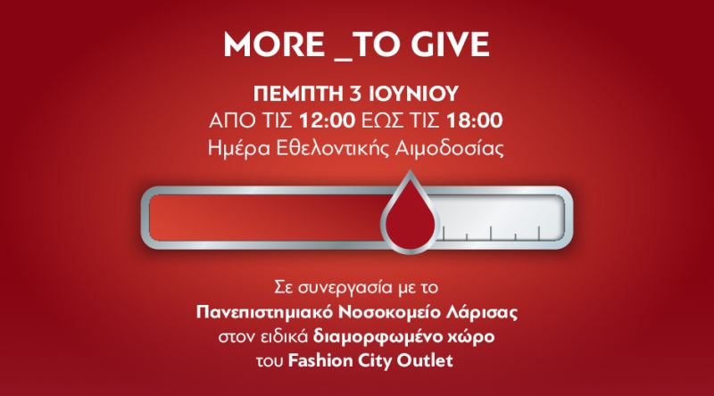 Δίνουμε αίμα, δίνουμε ελπίδα: Εθελοντική αιμοδοσία στο Fashion City Outlet την Πέμπτη 3 Ιουνίου