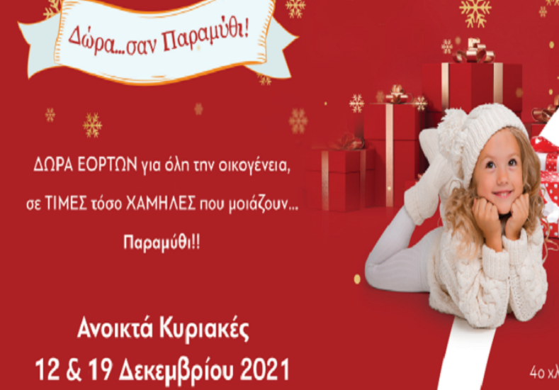 Με μεγάλες ευκαιρίες αγορών, στις γνωστές μοναδικές outlet τιμές τους θα λειτουργήσουν τα καταστήματα του εκπτωτικού κέντρου Fashion City Outlet, μεθαύριο Κυριακή 12Δεκεμβρίου, όπως και την επόμενη Κυριακή 19/12. Τα καταστήματα την Κυριακή θα είναι ανοικτά από τις 11:00 το πρωί έως και τις 20:00 το βράδυ, με συνεχόμενο ωράριο λειτουργίας και τηρώντας όπως πάντα …