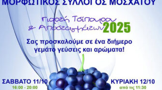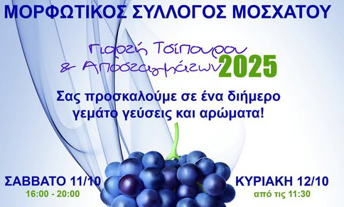 Για ακόμη μια χρονιά, ο Μορφωτικός Σύλλογος Μοσχάτου διοργανώνει, σε συνεργασία με το Υπουργείο Πολιτισμού, την Περιφέρεια Θεσσαλίας και το Δήμο Λίμνης Πλαστήρα, την καθιερωμένη πλέον «Γιορτή Τσίπουρου & Αποσταγμάτων». Φέτος, για πρώτη φορά, η γιορτή θα είναι διήμερη και θα πραγματοποιηθεί το Σαββατοκύριακο 11 & 12 Οκτωβρίου 2025. Το Σάββατο 11 Οκτωβρίου, η «Γιορτή …