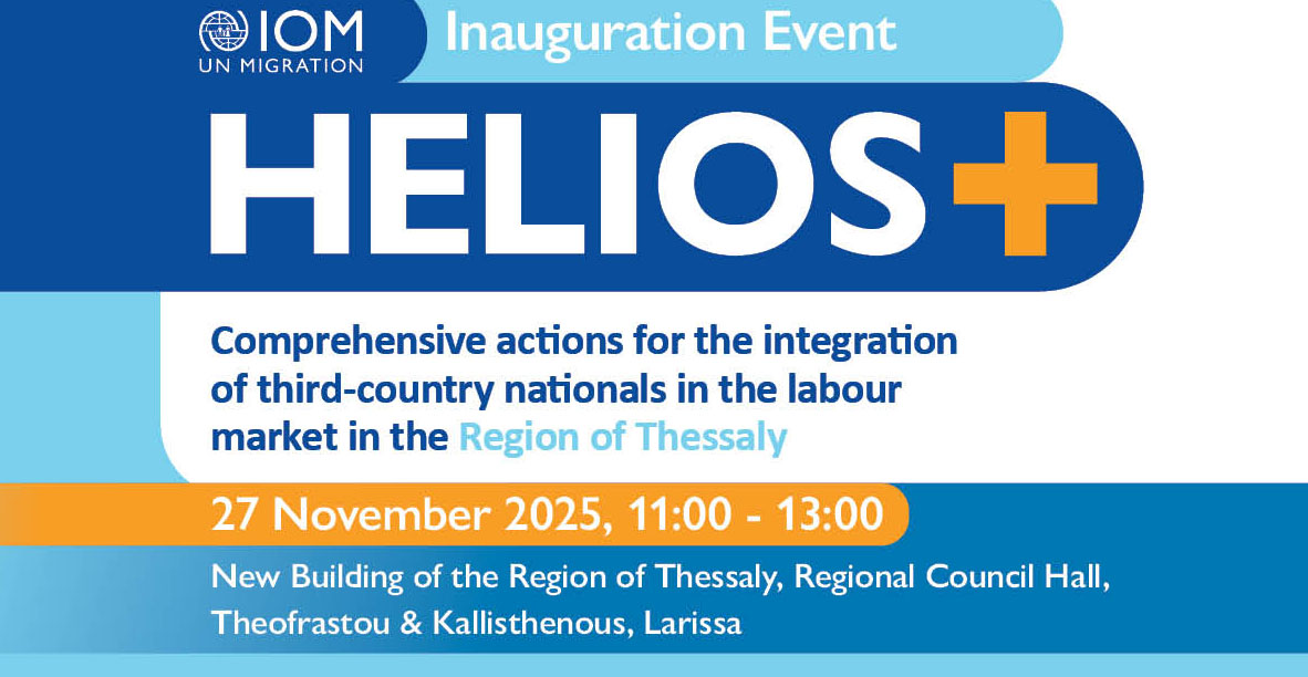 Η Περιφέρεια Θεσσαλίας και ο Διεθνής Οργανισμός Μετανάστευσης (IOM) διοργανώνουν την Εναρκτήρια Εκδήλωση του προγράμματος HELIOS+, με αντικείμενο τις Ολοκληρωμένες δράσεις ένταξης πολιτών τρίτων χωρών στην αγορά εργασίας στην Περιφέρεια Θεσσαλίας. Η εκδήλωση θα πραγματοποιηθεί την Πέμπτη 27 Νοεμβρίου, στις 11:00 π.μ., στο Νέο Κτίριο της Περιφέρειας Θεσσαλίας, στην Αίθουσα Περιφερειακού Συμβουλίου (Θεοφράστου & Καλλιθένης, …