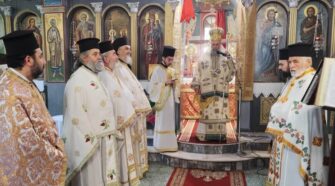 Ο Σεβασμιώτατος Μητροπολίτης μας κ. Τιμόθεος, το εσπέρας της Κυριακής 19 Μαΐου 2024, επί τη ανακομιδή και μετακομιδή του ιερού λειψάνου του εν αγίοις πατρός ημών Νικολάου, αρχιεπισκόπου Μύρων της Λυκίας, χοροστάτησε στην ακολουθία του Εσπερινού στον Ιερό Ναό Αγίου Νικολάου Τ.Κ. Γεωργικού. Πριν την απόλυση του εσπερινού χειροθέτησε εις Αναγνώστη τον κ. Αγησίλαο Καρατέλιο …