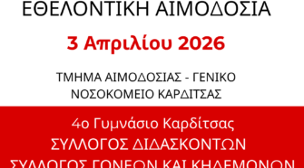 Το 4ο Γυμνάσιο Καρδίτσας διοργανώνει Ημέρα Εθελοντικής Αιμοδοσίας