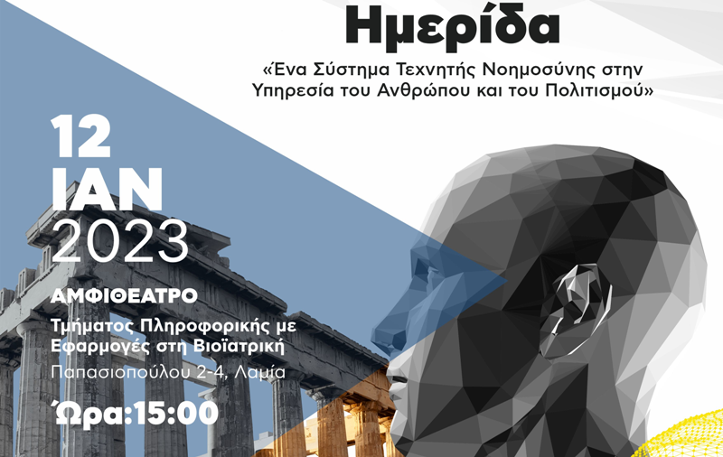 Την Πέμπτη, 12 Ιανουαρίου 2023, στις 15:00, στο Αμφιθέατρο του Τμήματος Πληροφορικής με Εφαρμογές στη Βιοϊατρική του Πανεπιστημίου Θεσσαλίας, Παπασιοπούλου 2-4, θα πραγματοποιηθεί η Ημερίδα με τίτλο «Ένα Σύστημα Τεχνητής Νοημοσύνης στην Υπηρεσία του Ανθρώπου και του Πολιτισμού» από το Πανεπιστήμιο Θεσσαλίας. Η Ημερίδα περιλαμβάνει την παρουσίαση του ερευνητικού έργου με τίτλο «ΕΝΟΡΑΣΗ-Ευφυές Οπτικοακουστικό Σύστημα …