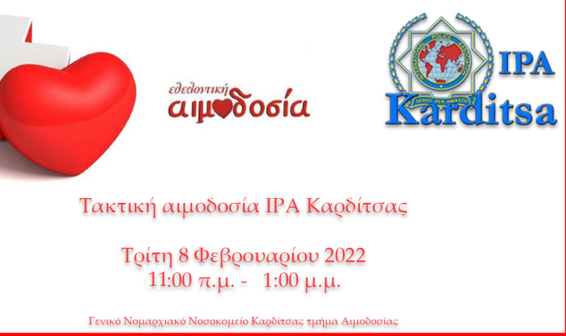Η IPA Καρδίτσας οργανώνει αιμοδοσία