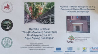 Ο Δήμος Λίμνης Πλαστήρα, σε συνεργασία με το Πανεπιστήμιο Θεσσαλίας, το θεσμοθετημένο Εργαστήριο Δενδροκηπευτικών και Εδαφικών Πόρων “Hortab”, οργανώνουν Ημερίδα για τις Περιβαλλοντικές Καινοτόμες Καλλιέργειες για τους παραγωγούς της περιοχής. Η εκδήλωση θα πραγματοποιηθεί την Κυριακή πρωϊ, 11 Μαϊου και ώρα 10.30 π.μ. στο Μορφοβούνι, στην αίθουσα του Πολιτιστικού Κέντρου Αντ. Σαμαράκης. Η εκδήλωση εντάσσεται …