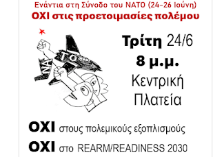 KKE(μ-λ) Καρδίτσας: Αντιπολεμικός συναγερμός! – Συγκέντρωση Τρίτη 24/6 στις 8 μμ στην κεντρική πλατεία
