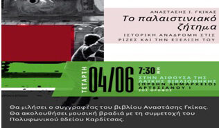Εκδήλωση παρουσίασης του βιβλίου «Το Παλαιστινιακό Ζήτημα Ιστορική αναδρομή στις ρίζες και την εξέλιξη του»