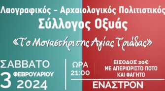 Έτοιμος για τη χειμερινή του εκδήλωση χορού είναι ο Λαογραφικός, Αρχαιολογικός και Πολιτιστικός Σύλλογος Οξυάς «το μοναστήρι της Αγίας Τριάδας». Παρά τα πολλά προβλήματα που αντιμετωπίζει το χωριό, με τους οικισμούς και τους κατοίκους της ανατολικής του πλευράς να παραμένουν ακόμα αποκλεισμένοι εξαιτίας των καταστροφών από τις θεομηνίες Daniel και Elias, το ΔΣ του Συλλόγου …