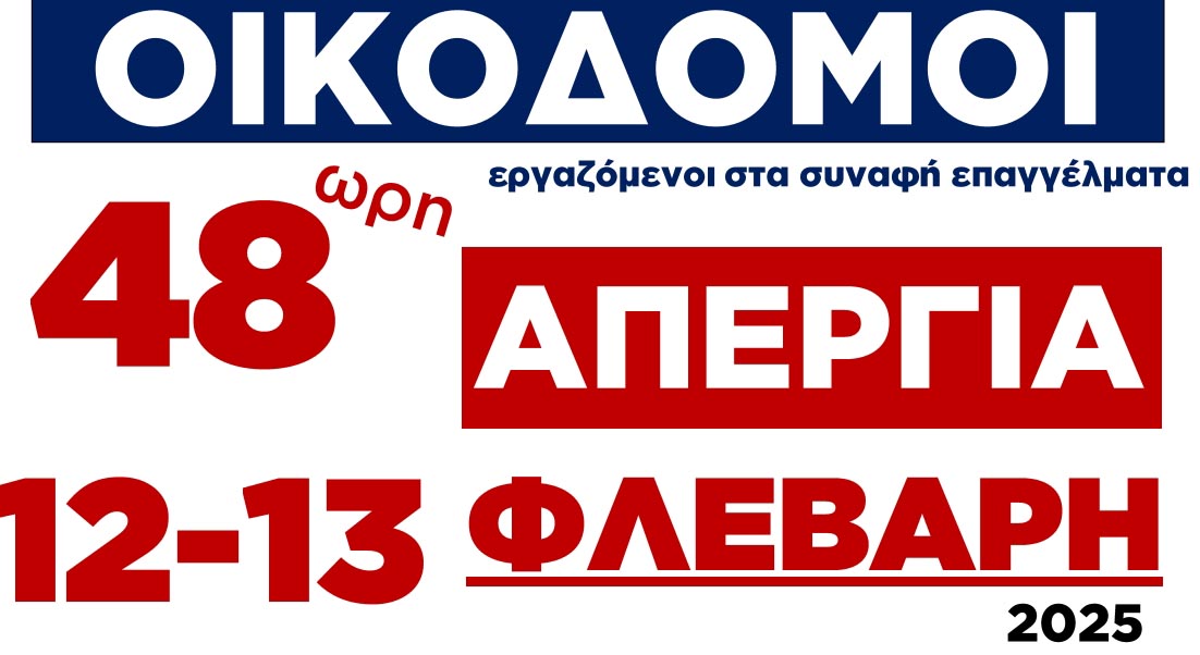 Οικοδόμοι Καρδίτσας: όλοι στην Πανοικοδομική απεργία στις 12 και 13 Φεβρουαρίου