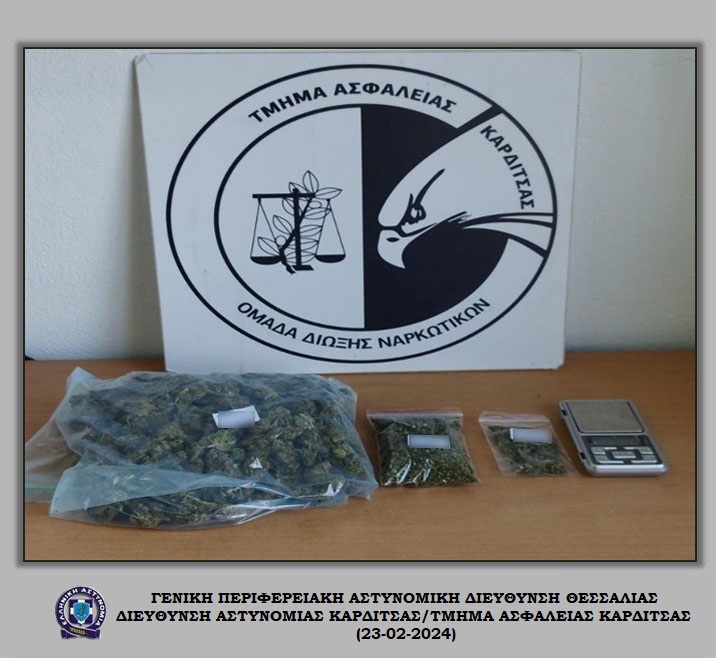 Συνελήφθη στις 23-02-2024 το πρωί στην Καρδίτσα, από αστυνομικούς του Τμήματος Ασφάλειας Καρδίτσας, ένας ημεδαπός άνδρας, για παράβαση της νομοθεσίας περί ναρκωτικών. Ειδικότερα, μετά από κατάλληλη αξιοποίηση στοιχείων, οι αστυνομικοί διενήργησαν νομότυπη έρευνα στην οικία του, με τη συνδρομή αστυνομικού σκύλου, κατά την οποία βρέθηκαν και κατασχέθηκαν συνολικά: -1- πλαστικό δοχείο και -2- νάιλον συσκευασίες …