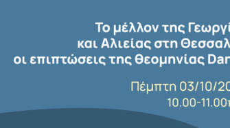 “Το μέλλον της Γεωργίας και Αλιείας στη Θεσσαλία, οι επιπτώσεις της θεομηνίας Daniel” είναι το θέμα διαδικτυακής δράσης του EUROPEDIRECT ΘΕΣΣΑΛΙΑΣ που θα πραγματοποιηθεί την Πέμπτη 3/10/2024 από τις 10.00-11.00π.μ Η δράση του EuropeDirect Θεσσαλίας γίνεται στα πλαίσια δράσεων του Κέντρου για ενημέρωση και ευαισθητοποίηση του κοινού σχετικά με τις εξελίξεις που υπάρχουν στην ΕΕ …