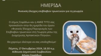 Ενημερωτική ημερίδα διοργανώνει ο Δήμος Σοφάδων σε συνεργασία με την ΑΜΚΕ Τυτώ την Πέμπτη 17 Οκτωβρίου και ώρα 18:30 μ.μ. στην αίθουσα του Δημοτικού Συμβουλίου Σοφάδων. Η «Οργάνωση για τη Διαχείριση και Διατήρηση της Βιοποικιλότητας στα Αγροτικά Οικοσυστήματα – ΤΥΤΩ» θα ενημερώσει τους παρευρισκόμενους για το πρόγραμμα «Φυσικός Έλεγχος / Περιορισμός των Επιβλαβών τρωκτικών στη Γεωργία μέσω της …