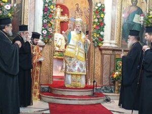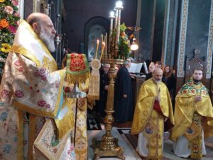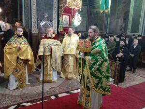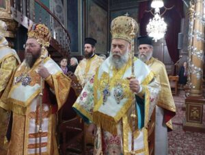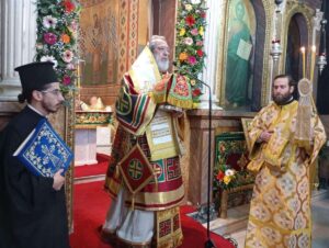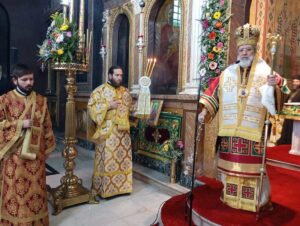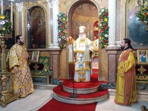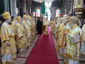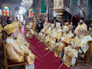 Στην αρχιερατική Θεία Λειτουργία προέστη ο Σεβασμιώτατος Μητροπολίτης Σιδηροκάστρου κ. Μακάριος και συλλειτούργησαν οι Μητροπολίτες Μεσσηνίας, Μεθώνης, Κορώνης, Πύλου και Ανδρούσης κ. Χρυσόστομος, Άρτης κ. Καλλίνικος, Κηφισίας, Αμαρουσίου, Ωρωπού και Μαραθώνος κ. Κύριλλος, Γλυφάδας, Ελληνικού, Βούλας, Βουλιαγμένης και Βάρης κ. Αντώνιος, Τρίκκης, Γαρδικίου και Πύλης κ. Χρυσόστομος, Καρπενησίου κ. Γεώργιος, Σταγών και Μετεώρων κ. Θεόκλητος, Λαρίσης και Τυρνάβου κ. Ιερώνυμος, Λαγκαδά, Λητής και Ρεντίνης κ. Πλάτωνας, Πολυανής και Κιλκισίου κ. Βαρθολομαίος, Θήρας, Αμοργού και Νήσων κ. Αμφιλόχιος και ο Σεβασμιώτατος Μητροπολίτης μας Θεσσαλιώτιδος και Φαναριοφερσάλων κ. Τιμόθεος.