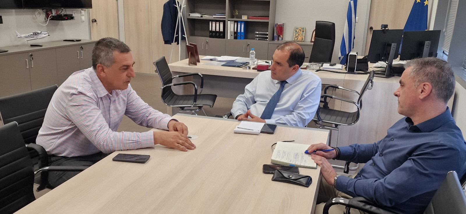 Μέσα σε ιδιαίτερα θετικό και εποικοδομητικό κλίμα πραγματοποιήθηκε σήμερα στην Αθήνα η συνάντηση του Περιφερειάρχη Θεσσαλίας κ. Δημήτρη Κουρέτα με τον Υφυπουργό Κλιματικής Κρίσης και Πολιτικής Προστασίας, κ. Κώστα Κατσαφάδο και τον Γ.Γ. Κρατικής Αρωγής Πέτρο Καμπούρη.