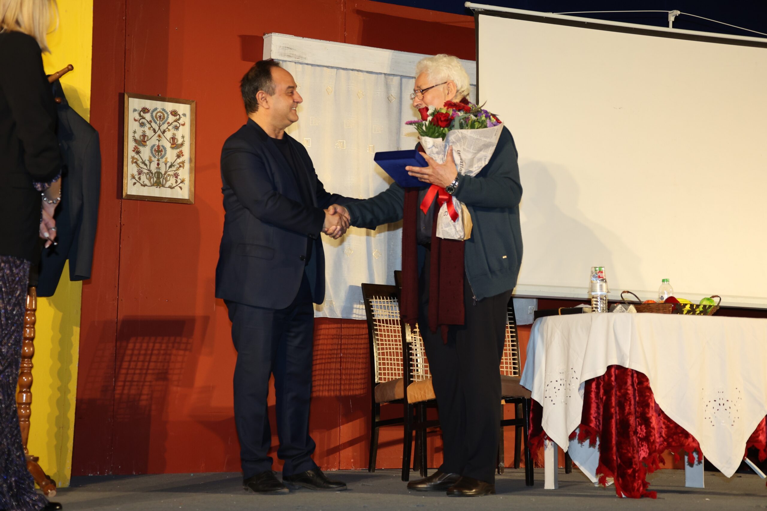 Την τιμητική πλακέτα απένειμε ο δήμαρχος Καρδίτσας Βασίλης Τσιάκος συγχαίροντας τον για το έργο του και ευχόμενος να είναι πάντα καλά.