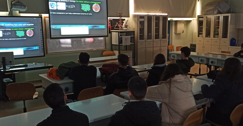 Μια ξεχωριστή σχολική εμπειρία βίωσαν μαθητές της Γ’ τάξης κατεύθυνσης Υγείας του 4ου ΓΕΛ Καρδίτσας καθώς είχαν την ευκαιρία να συμμετάσχουν  στην ετήσια διαδικτυακή διάλεξη που διοργανώνει το Ευρωπαϊκό Ερευνητικό Κέντρο Μοριακής Βιολογίας (European Molecular Biology Laboratory – EMBL) για τα σχολεία. Η διάλεξη πραγματοποιήθηκε την  Παρασκευή 02/12 και 11.30πμ ώρα Ελλάδας με τον Καθηγητή James Sharpe να αναλύει το θέμα: “The shapes of life: modelling how cells self-organise” – “Οι μορφές της ζωής: μοντελοποιώντας την αυτο-οργάνωση των κυττάρων”.